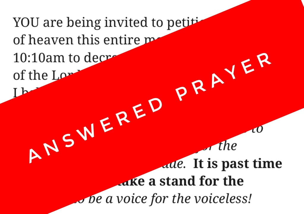 He continued, I have come to give LIFE. The enemy comes to steal, kill and destroy. I am the giver of LIFE. Decree forth LIFE and call forth others to come into agreement for the ending of abortion in the United States of America.